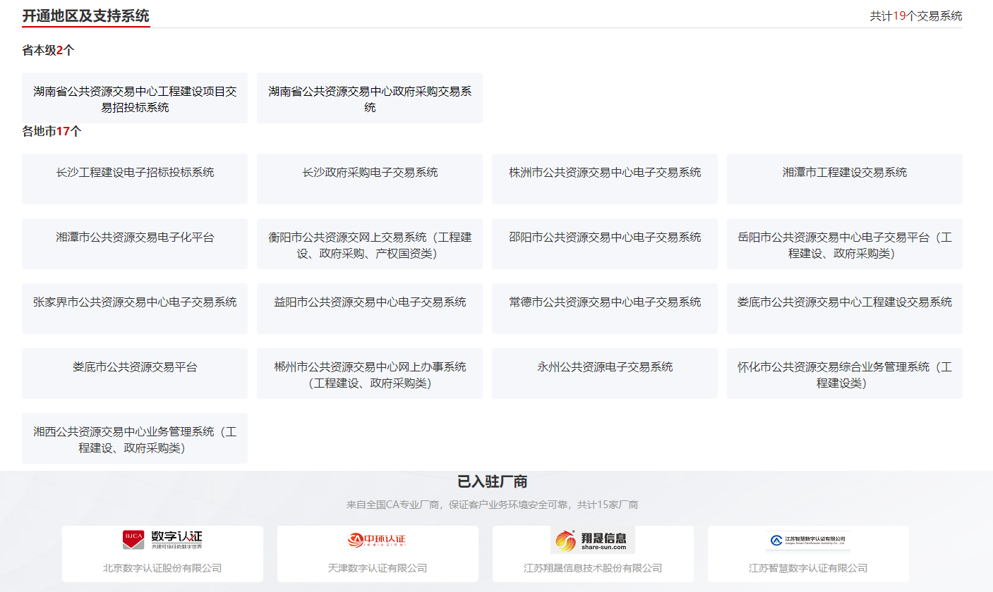 湖南支持多種CA證書,這里推薦您辦理湖南CA,它在湖南各公共資源平臺(tái)和政采平臺(tái)是通用的。