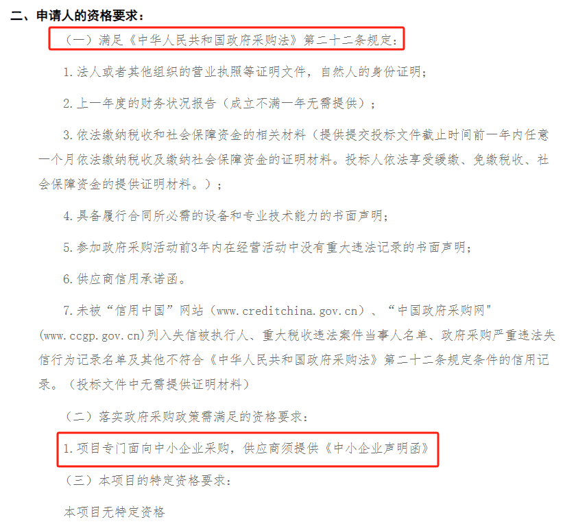 (二)本項(xiàng)目專門面向中小企業(yè)采購,供應(yīng)商須提供《中小企業(yè)聲明函》