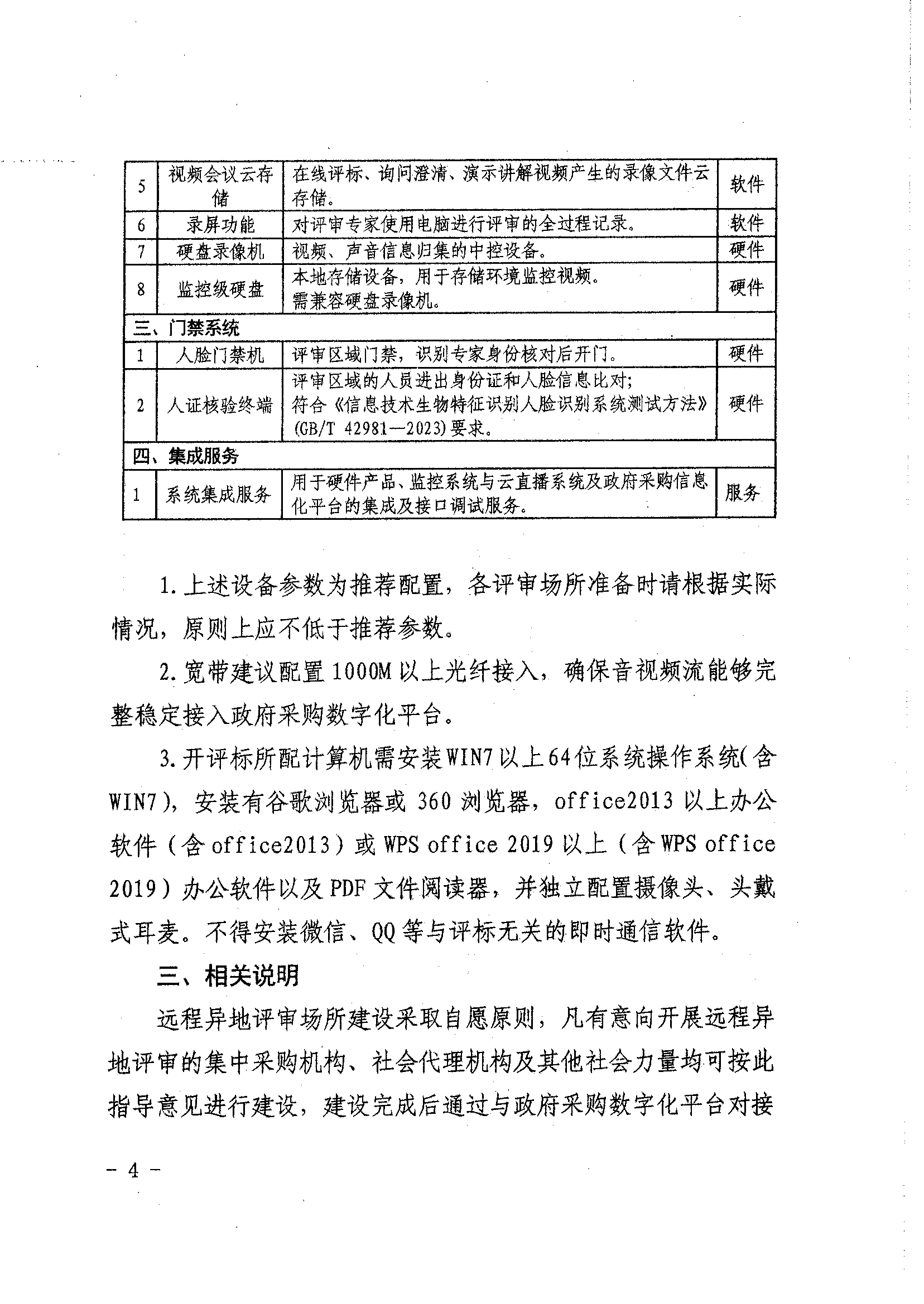 近日,山西省財政廳發(fā)布《關于遠程異地評審場所建設的指導意見》,明確了遠程異地評審場所建設的6項基本要求和18項軟硬件要求。《指導意見》提出遠程異地評審場所的基本要求,包括具備獨立的開、評標室,評標室具有相對獨立的工作席位空間,每個席位均配備電腦、耳機、攝像頭,保證各評標席位之間不互相干擾;評審場所須實現(xiàn)可視化遠程開評標,項目主持人(負責人)與評審專家物理隔離;評審場所對角設置全覆蓋無盲點的環(huán)境監(jiān)控及音頻采集系統(tǒng)等。