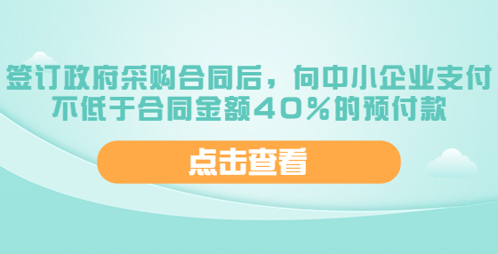 山西:簽訂政府采購(gòu)合同后,向中小企業(yè)支付不低于合同金額40%的預(yù)付款