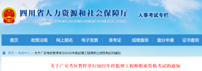 據(jù)四川省人事考試網(wǎng)5月10日消息,決定暫停廣安考區(qū)原計劃于5月14、15日舉行的2022年度監(jiān)理工程師職業(yè)資格考試。