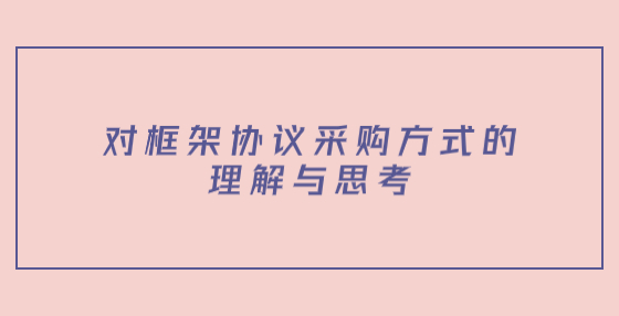 對(duì)框架協(xié)議采購(gòu)方式的理解與思考